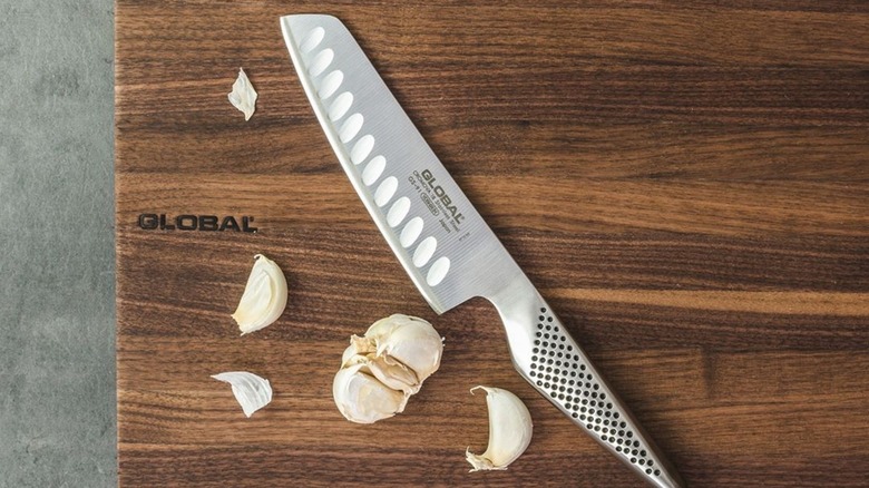 Aiming to combine Japanese craftsmanship with Western utility, Global knives are ground to a point instead of a beveled edge. Known for their long cutting edge, Global knives feature double-edged blades and longer handles to ensure the weight of the knife is perfectly balanced for easier handling and more precise control over your cuts. Unlike Shun's cutlery, these blades are made of stainless steel, which Chef Goku tells us is a more practical choice for everyday use and easier to maintain.