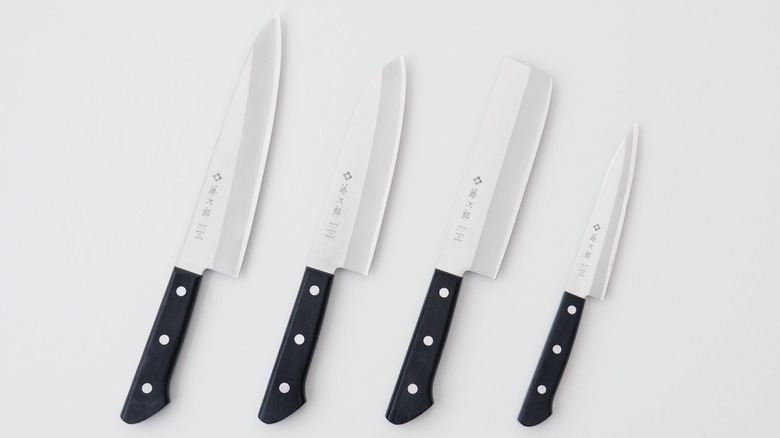 Masamoto offers knives with a slightly lower or higher HRC, depending on your knife needs. For instance, its gyuto chef's knife has an HRC of 57, which Goku points out is often better for beginners because the softer stainless steel is easier to sharpen and maintain and is less likely to chip. More specialized knives with an HRC of 62 to 64 are geared toward advanced cooks — such as petty, which is a small knife suitable for delicate tasks; yanagiba knives made for sushi; and usuba, which is designed to cut vegetables.