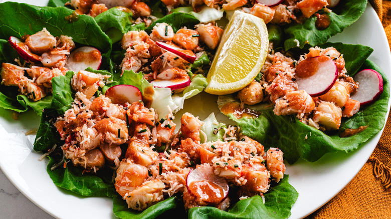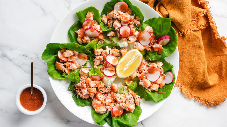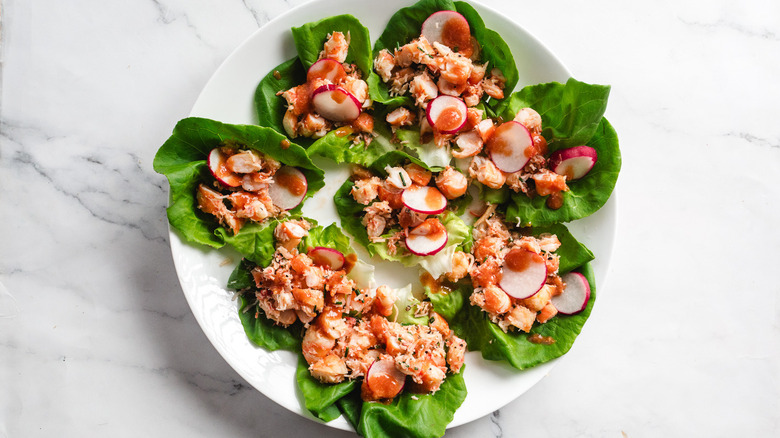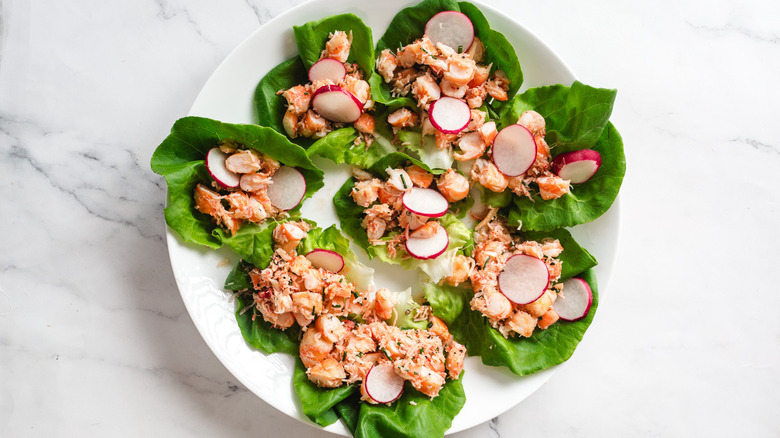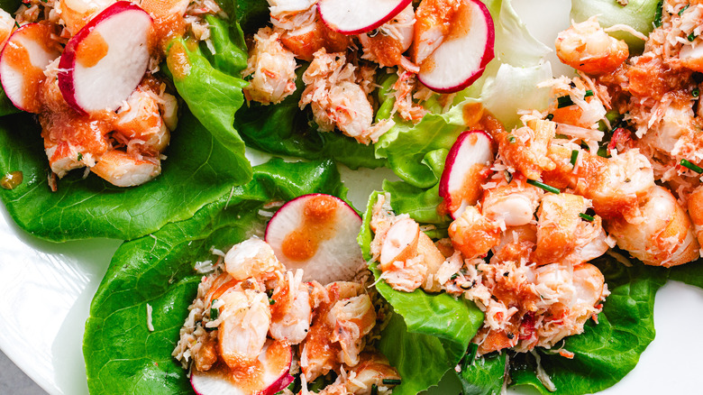 According to recipe developer Ksenia Prints of At the Immigrant's Table, these lettuce wraps offer a lighter, much more elegant alternative to traditional seafood cocktails, and they're perfect for a holiday cocktail party or even a light lunch on warm weather days. This recipe balances the natural sweetness of the crab and shrimp with the tangy kick of Worcestershire and horseradish. Boston lettuce provides a satisfying crunch and a convenient wrap for the filling, and radishes are the perfect peppery garnish. Easy to prepare and visually appealing, these wraps offer sophistication and flavor with their fresh and elegant presentation.