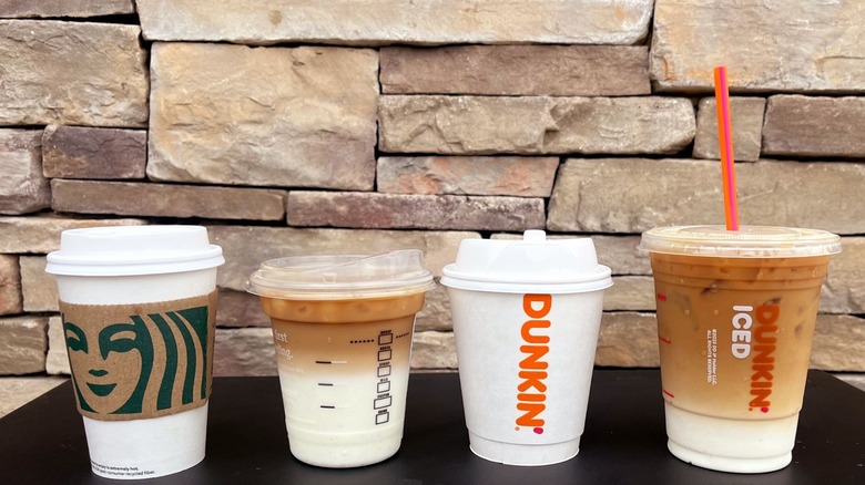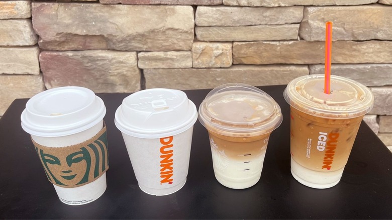 From pumpkin to caramel, lattes are usually at the forefront of espresso options at coffee shops. That's why I wanted to try the hot and iced macchiatos at Starbucks vs Dunkin'. These brands have a long list of coffee-based items on the menu, including a mix of staples, fan favorites, and seasonally rotating items such as the Pumpkin Spice Signature Latte from Dunkin's fall menu. While many people are loyal to one or the other, it often boils down to whether you're from the East or West Coast. I wanted to test both coffee companies out.