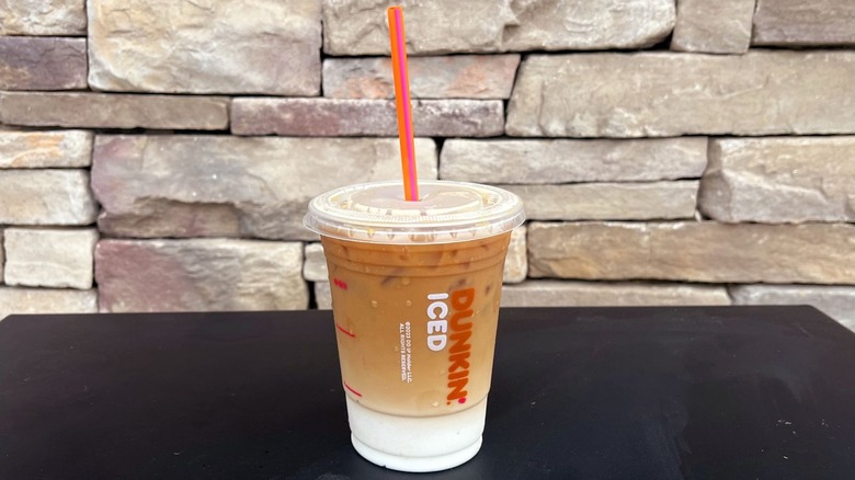 The espresso has a slightly bitter taste, and the drink has a strong espresso flavor even with the milk. At first, it doesn't look like there's much ice, but as you sip, you begin to see more of it. At the halfway point, the beverage had a tan, brown color as the milk slowly blended into the drink or was sucked up. The overall flavor is potent, and the coffee comes through despite the milk. The straw might account for why it tastes intense since you finish the milk first. Out of every Dunkin' iced coffee, the iced macchiato doesn't rank very high, but it has potential if you add some syrup.
