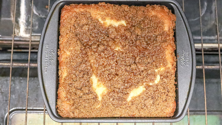 Bake in the preheated oven until the topping is golden brown, and a toothpick inserted into the center of the cake comes out clean, about 40-50 minutes.