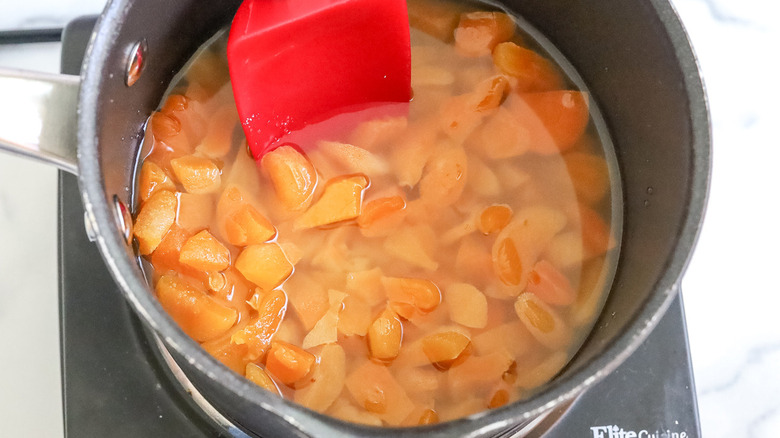 - Combine the dried apricots, water, and sugar in a medium saucepan.