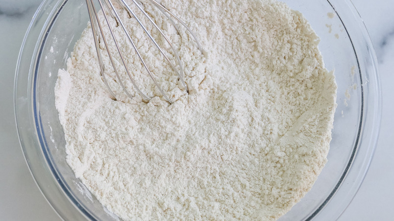 While the apricots cook, in a medium bowl whisk together flour, baking powder, baking soda, and salt.