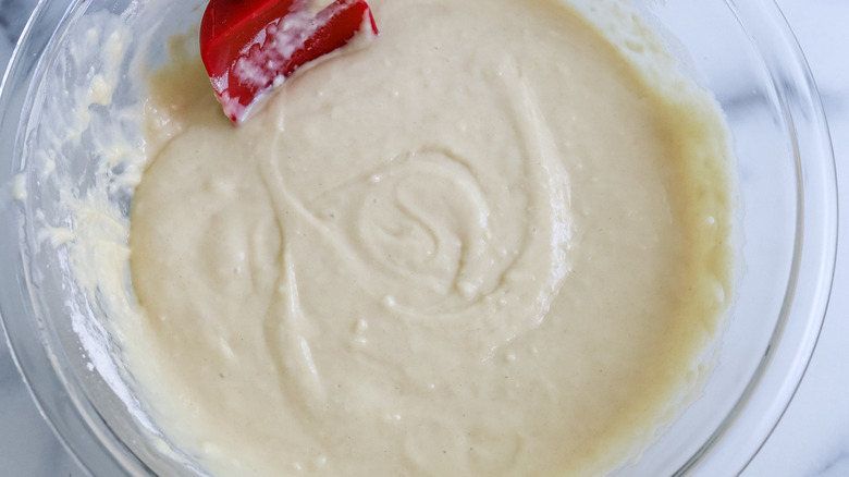 - Add the dry ingredients into the bowl with the wet ingredients and stir until just combined. Set aside.
