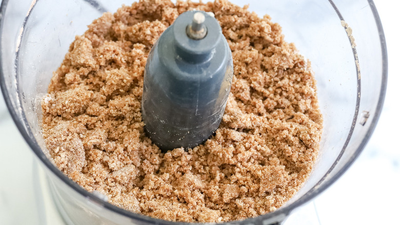 - Add the brown sugar, flour, cinnamon, and butter to the bowl of a food processor and pulse until the mixture becomes pea-sized crumbs. Set aside.