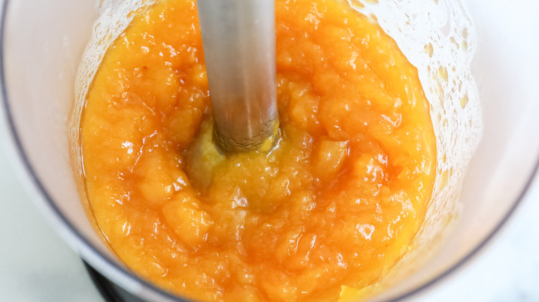 - Use a blender or an immersion blender to blend the apricot mixture until smooth.