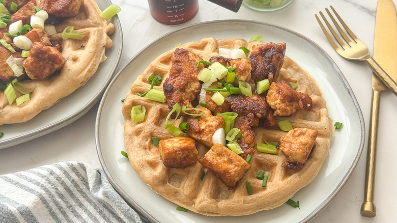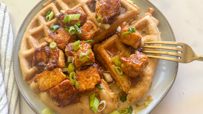 The tofu and waffles are ready to serve.