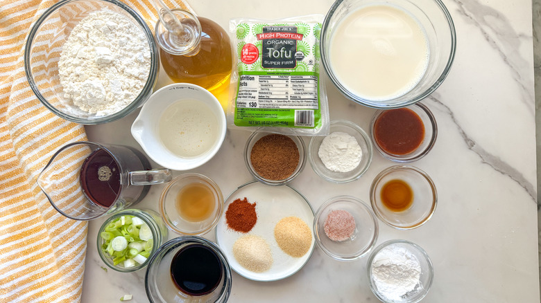 Gather the ingredients for sweet and spicy tofu and waffles