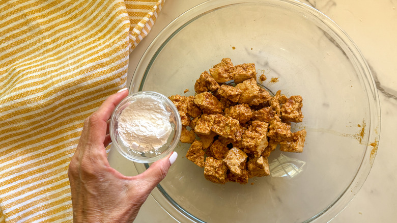 Step 8: Add cornstarch to the tofu