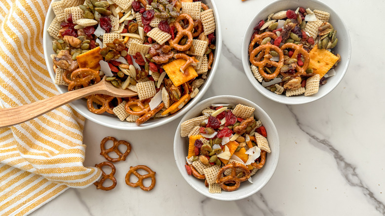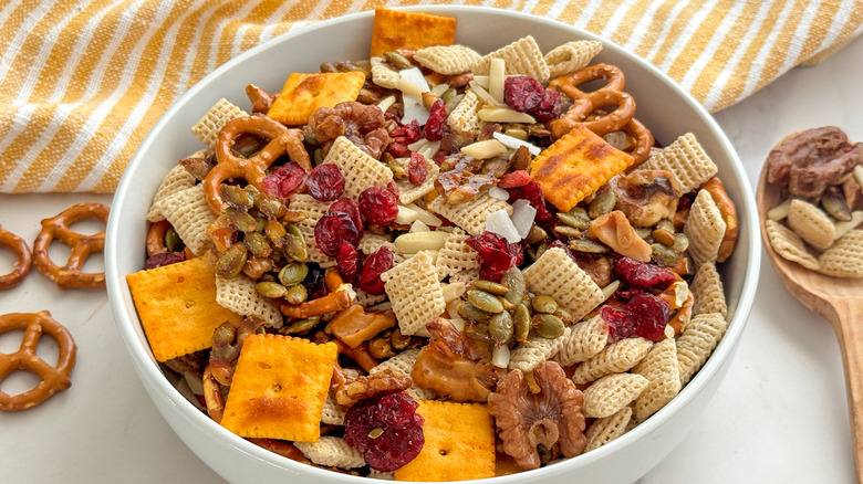 - The snack mix is ready to serve or store.