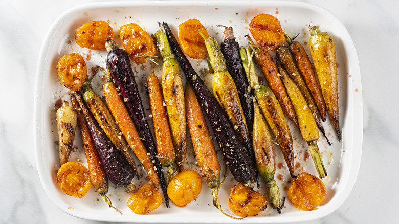 Roasting is a long-standing favorite way to cook vegetables because of the extra flavor and texture they develop in the oven that sauteing and steaming just can't match. But if you thought there was still a limit to the depth of flavor that you can achieve with simple roasted veggies, think again — and then try using infused oil the next time you make them. Cooking oil can be infused or flavored with no shortage of spices, herbs, and other aromatics, and the oil takes on the flavor of each differently than if you were to add them directly to your vegetables.