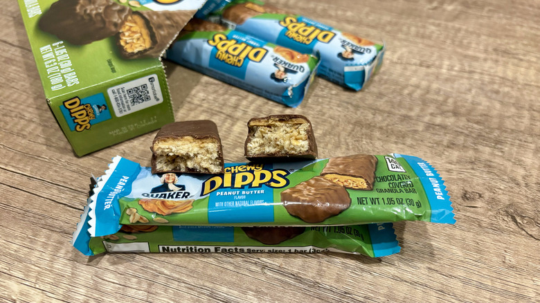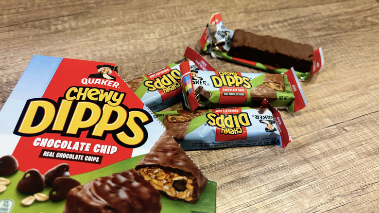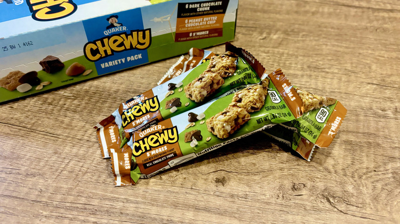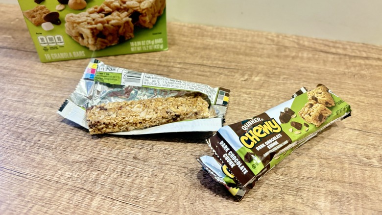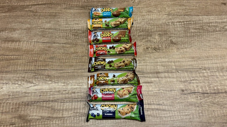 Today, the lineup includes chocolate chip, peanut butter and chocolate chips, s'mores, dark chocolate chunk, strawberry or blueberry yogurt, and two dipped flavors in chocolate chip or peanut butter. My family has long stuck with the chocolate chip variety, but I've always wondered if there's a better flavor out there. After sampling each available option, I can say with absolute certainty that Quaker's chewy granola bar line has some real delights, and it doesn't stop at chocolate chips. In my overall ranking, I give high marks to bars that have a balanced flavor and texture that is chewy but not overly so.