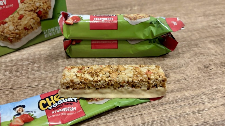 Quaker also offers a strawberry yogurt granola bar, and though marginally better, it's still far from my favorite. The bar has a coating on the bottom of what is supposed to be yogurt, and the granola is mixed with freeze-dried strawberries.
