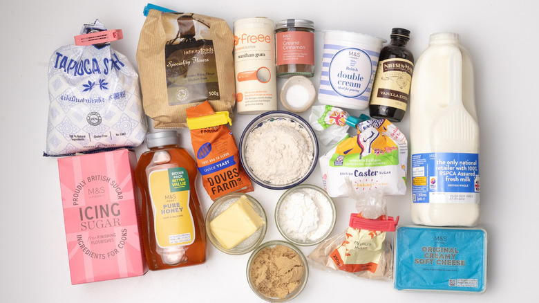 Gather the ingredients for this gluten-free cinnamon rolls and cream cheese icing recipe