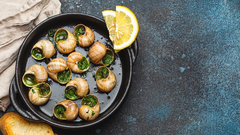 While the ancient origins of escargot go all the way back to the Paleolithic period of human history (aka 30,000 years ago), it's safe to say that the way we eat snails has evolved since then. A simple way to whip up this delicacy is to bake your escargot, which only takes about half an hour in total and involves plenty of fresh herbs and salty parmesan. But if you're looking for a preparation method that's a little more off the beaten path, we turned to a pro to get you the best guidance.