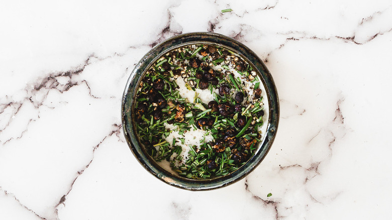 For the spice rub, gather juniper berries, black peppercorns, fresh rosemary, thyme, and kosher salt. The main component is half a rack of venison, and you'll need grapeseed or canola oil for searing. If you're going for a full rack, keep the butter as is (the recipe makes for plenty), but double the spice rub ingredients. For the herb butter, collect unsalted butter, fresh rosemary, thyme, dill, tarragon, and chives. You'll also need garlic, a lemon for zesting, and additional salt.