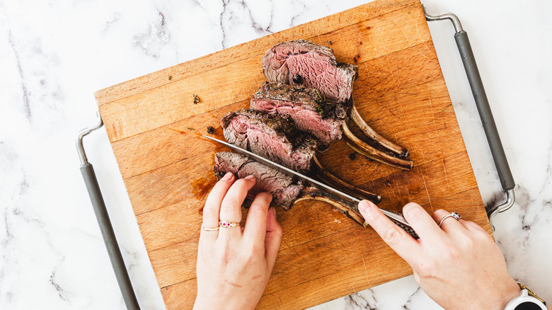 - Carefully cut between the ribs to separate the rack into individual chops.