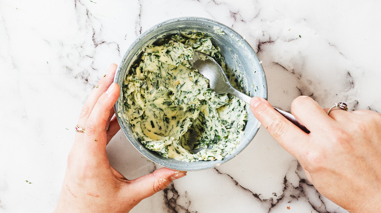 While the venison cooks, combine all of the herb butter ingredients in a bowl.