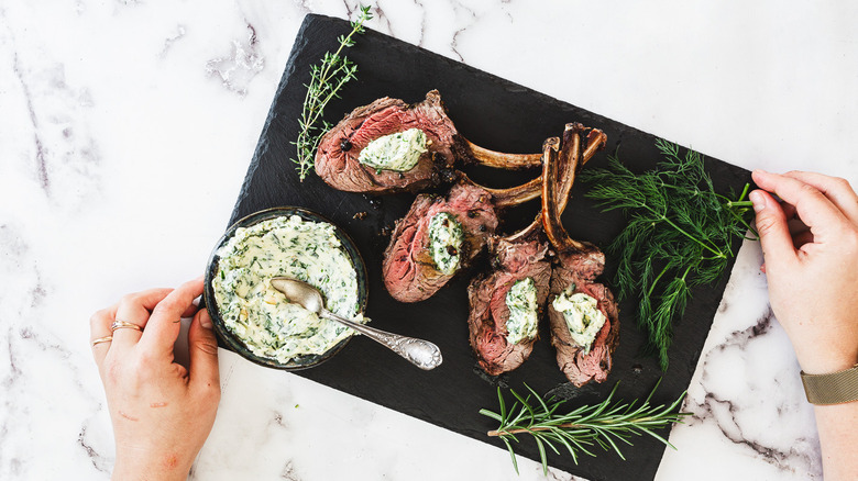 This roasted rack of venison with herb butter is a sophisticated dish that brings out the best in this lean, flavorful meat. Crusted in coarsely crushed spices and woodsy herbs and topped with a fragrant herb butter, this recipe has rich textures and contrasting flavors.