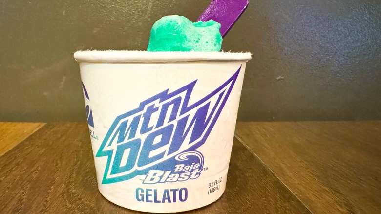 To celebrate a landmark touchstone its dubbed a "BAJAVERSARY," Taco Bell has just released a Baja Blast-flavored gelato nationwide. It's the first in a duo of desserts the chain plans to drop in celebration of its vibrant collab, the second being a Baja Blast pie later this year. Taco Bell has previously described its Mtn Dew Baja Blast gelato as being "a citrus-lime flavored gelato," and given the buzz it generated during its 2023 test release, I was eager to get down to my location for a taste.