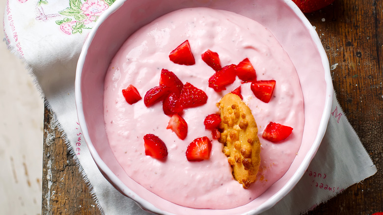 But before and after this, you'll need to flavor your chips and pair them with dip. Salt, garlic powder, and onion powder are classic options, but you can also go with paprika, chili powder, red pepper flakes, or Tajin seasoning. For dessert-like chips, feel free to toss yours with cinnamon and sugar. Practically any dip will pair well with these crispy morsels, but if you're using a spicy seasoning, you can douse yours in smoky white queso, guacamole, spicy black bean dip, corn dip, or a party-pleasing taco dip. But if you're going in a sweet direction, sugary plantains would be delicious in caramel pecan cheesecake fruit dip, a s'mores-flavored version, or a cookie dough bowl.