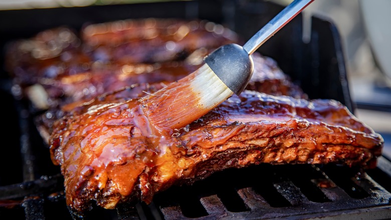 Lastly, instead of simply sprinkling seasonings over raw meat, take steps to let your flavorings stick to the ribs as they rest over the flames, while also increasing flavor. Honey can lend sweetness to ribs, or for those craving a fiery bite, hot sauce will bring a zippier punch to the meal. Franklin says, "I also prefer a hot sauce binder and lots of spritzing with apple cider vinegar." The zingy combination of apple cider vinegar and hot sauce keeps seasonings glued to the meat, resulting in cozied-up hot, tangy, and rich flavors that settle in and leave you with fully tasty bites. Experiment with different kinds of hot sauces, as some lend sweeter tasting notes than others that have a fiery list of hot-pepper ingredients. And then just go wild with culinary creations of your own, as hopefully beef ribs shouldn't intimidate you any longer.