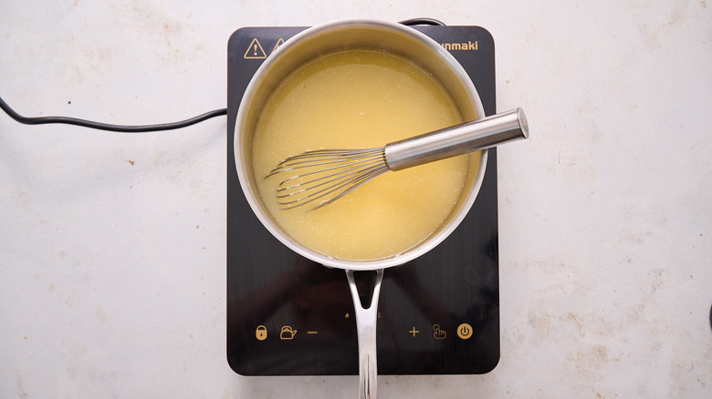 Stir in the cornmeal slowly while whisking until all the cornmeal is incorporated.