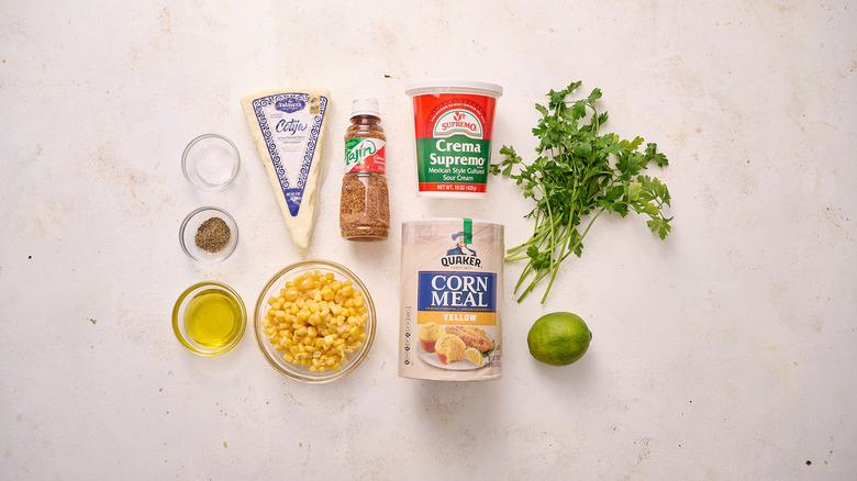 The ingredients needed for elote-style polenta cake hors-d'oeuvres