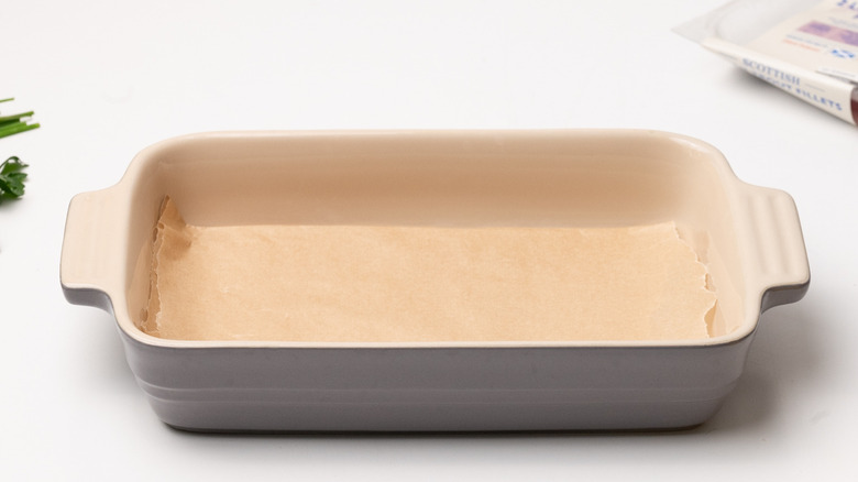 Step 2: Line a baking dish