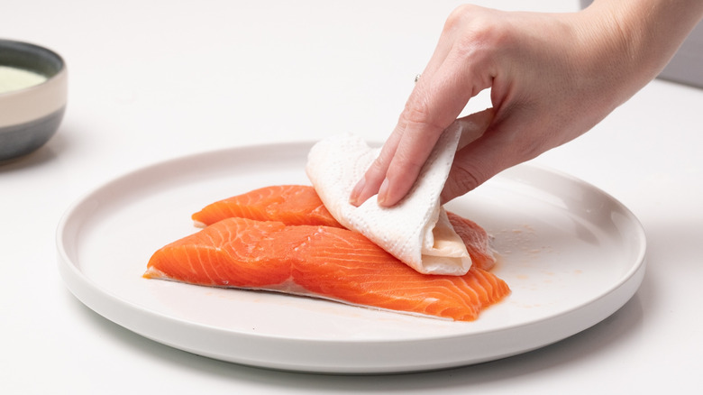 Pat the trout fillets dry with paper towels.