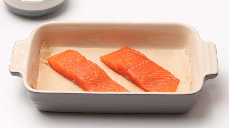 Line a baking dish with parchment paper.