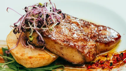The first depiction of a goose being fed to enlarge its liver dates back to ancient Egypt, and over the centuries, foie gras traveled to France, the largest producer of foie gras today. A whole foie gras isn't difficult to cook but it does require some preparation. Most of foie gras is fat and, when cold, it will be difficult to work with, so bring the foie gras to room temperature before working with it. For more foie gras preparation tips, we consulted with Chef Ryan Ratino, an award-winning restauranteur and owner of Maass, Ômo by Jônt, and two Michelin-starred restaurants, Jônt and Bresca.