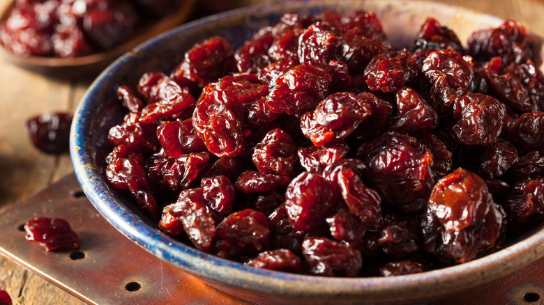 Dried cherries work particularly well as either a replacement or addition to other sweet and fruity elements in a chicken salad because of their bold flavor and density. Whereas a cranberry and pecan chicken salad recipe will include such ingredients as chopped nuts and scallions for the right sort of crunch, it's vital to pick the right fruit additions to balance and enhance the savory flavors at play. Adding dried cherries along with dried cranberries or replacing them altogether will significantly boost both sweet and tart flavors while changing up the texture to something more substantial — or "meatier."