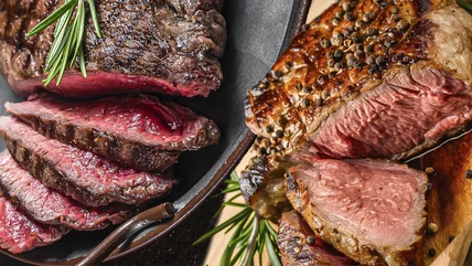 Ribeye's already tender meat and well-marbled fat mean you don't want to spend too long cooking it, and the steak does best with simple preparations that let its natural flavor shine. This is best done over high heat in a cast iron skillet or hot grill, although on a grill, you'll need to be careful about the melting fat dripping onto the flames. As a meal, you'll want to serve ribeye as a basic steak to enjoy its rich taste without distraction, ideally with some simple sides like roasted potatoes or a light salad. If you do want to serve it with sauces or as part of a dish, keep the pairings brighter to balance out the meat, like chimichurri or serving sliced ribeye as part of a steak salad.