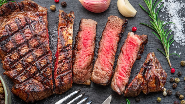 Ribeye is special for a lot of reasons, but it's most famous for its excellent fat marbling. The area around the rib of the cow gathers lots of fat and, in the ribeye, it is perfectly flecked and streaked through the steak. However, it does have a little more connective tissue than other desirable cuts of steak, so it helps to cook ribeye to a slightly higher temperature to break down the tissue and make it as tender as possible. Ribeyes are a versatile cut that is hard to overcook, and it's considered a favorite among people who like fattier cuts of steak.