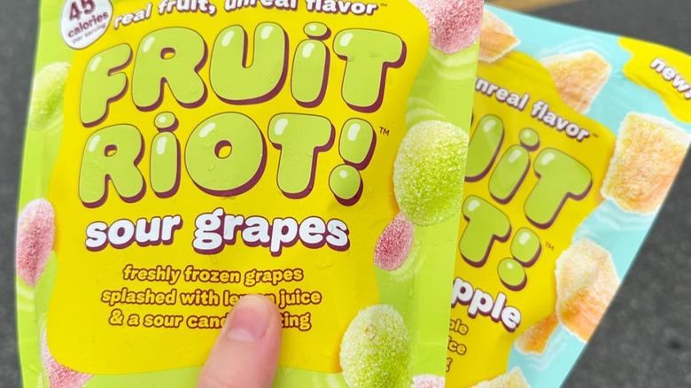 In addition to yummy food court bites and ready-to-eat prepared foods, Costco can always be counted on to supply shoppers' favorite snacks in bulk. If you ask us, the retailer's unofficial motto may very well be "the bigger the package, the better." It's an ethos that's certainly embraced by fans of Fruit Riot's Sour Grapes. Touting "real fruit, unreal flavor" on the bag, the Fruit Riot product features freshly frozen grapes topped with lemon juice and sour candy coating, resulting in a pleasantly tart treat folks can't seem to get enough of.