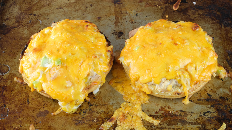 A delicious homemade tuna melt requires a quality base, like our crunchy green goddess tuna salad recipe, but it's certainly not ready to eat until it's finished with cheese. A classic rendition of the sandwich often uses a slice of cheddar cheese, but you already know that's not the only option. There are many types of cheese that you can use instead of cheddar. However, there are some considerations before you get too experimental in the kitchen.