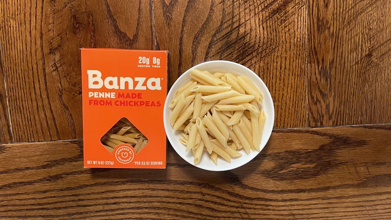 Using chickpeas as the main ingredient unfortunately results in a very chickpea-forward flavor profile, along with a slightly grainy and gritty texture. Additionally, while you might expect a pasta made from chickpeas to remain a bit more al dente than other types of gluten-free pasta, Banza's penne started to fall apart on the plate. Now, unlike Cappello's, you can at least tell what this gluten-free pasta brand is when looking at it, so Banza avoids last place. But since it's clear to anyone that this isn't traditional pasta after just one bite, it comes near the bottom.