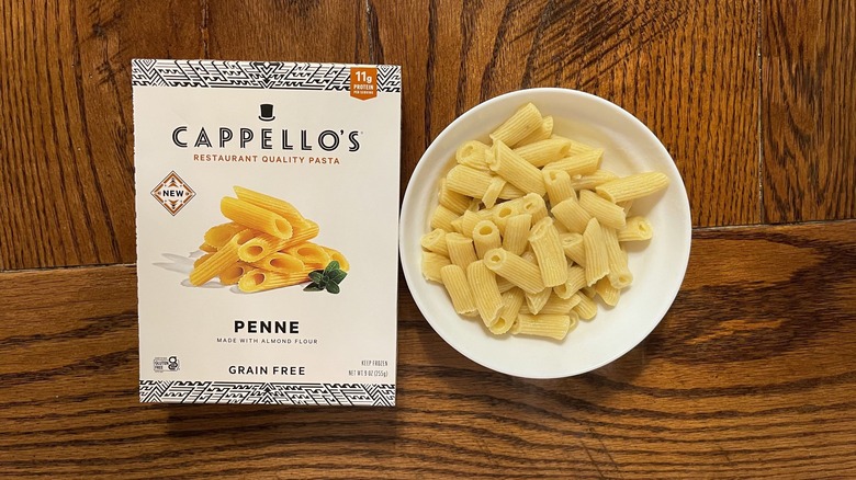 Located in the frozen aisle, Cappello's goes a step further in its gluten-free efforts by removing grains entirely from its pasta (as noted on the box). Comprised mainly of almond flour and eggs, this gluten-free pasta brand also contains a surprising amount of protein with 11 grams per serving. Since it cooks in less than two minutes, as well, it may seem like a great choice to keep on hand for quick meals. However, the positives stop there for Cappello's and its gluten-free pasta.