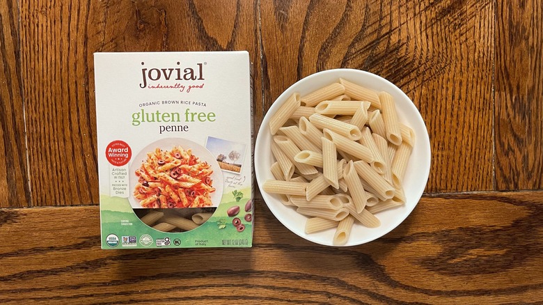 The gluten-free penne from Trader Joe's is also shaped a bit differently than other varieties — coming in shorter and rounder — allowing it to hold up well to both cooking and reheating. This makes it extremely versatile in most sauce-based pasta dishes and is why it's one of my go-to choices for numerous baked pasta recipes. It's not the best gluten-free pasta brand on the market, but it's not the worst, either.