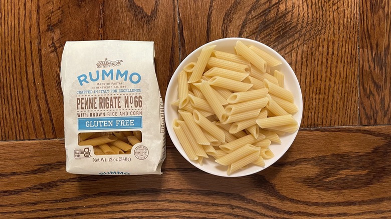 Made in (and imported from) Italy, Rummo utilizes a blend of rice and corn. While this is similar to several other brands on this list, there's one notable addition: potato starch. Of course, there's a reason why potato starch can be found in a wide variety of recipes. In this Rummo product, it helps deliver a penne pasta extremely similar in both taste and texture to what you'd find with traditional pasta — boosting it into third place on this list.