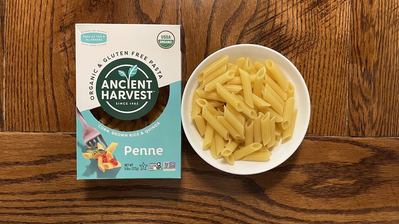 A number of gluten-free pasta brands utilize a blend of corn and white rice to mimic traditional pasta, and Ancient Harvest changes this up a bit by adding quinoa to the mix. Now, it's not uncommon for gluten-free pastas that contain these types of grains to have a distinct flavor profile. But I was pleasantly surprised to discover this wasn't the case with Ancient Harvest's penne. I'd go so far as to say there wasn't any other flavor present besides what you'd expect from a traditional pasta.