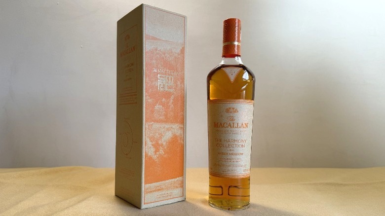 As stated above, The Macallan's Harmony Amber Meadow scotch is part of its Harmony Collection, which was first announced in 2021. Other releases include 2021's Harmony I, which explored the relationship between whisky and chocolate, and Harmony II, which was released in 2022 and coffee-inspired. The brand explains the collection seeks to highlight The Macallan's historic connection to nature and the land its distillery sits on (a pattern for the 200-year-old whisky company), with an emphasis on sustainability and new packaging techniques. All scotches in the collection are single malts and made in collaboration with an expert from outside the Macallan family — in this case, the McCartney sisters Stella and Mary. (If you're unfamiliar, yes, that McCartney, though both sisters are well-respected in their own rights and in their respective industries.)