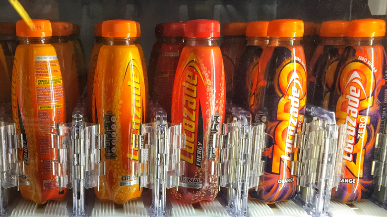 By the 1950s, Lucozade was being promoted as a form of energy drink, and by the 1980s, the product was completely rebranded as a sports drink. New flavors also emerged, with orange and lemon versions being the first variants created to complement the original's vaguely citrusy profile. In the years since, Red Bull and Monster have overtaken Lucozade in terms of popularity, but it remains a British favorite. A variety of flavors have joined the line-up, including some limited editions. There's also a Zero range that replaces sugar with artificial sweeteners, and a non-carbonated Sport range. Although Lucozade is still referred to as an energy drink, it contains just 12 milligrams of caffeine per 100 milliliters — roughly the same amount of caffeine as a cup of tea. Although this won't give you the same kick as most other energy drinks, it might be a more suitable alternative for those with a high sensitivity to caffeine.