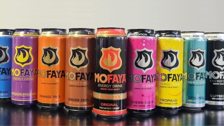 MoFaya has collaborated with a huge range of inspiring and influential Black South Africans over the years, putting resources into all manner of charitable endeavors. Its energy drink range has expanded to include all sorts of creatively named varieties, such as Cherri Boom, Passion Phusha, Flavatron, and Vitamin Ting. There's also a sugar-free version of the original for the more health-conscious customer. Each 500-milliliter can of MoFaya Original contains 160 milligrams of caffeine, which is roughly equivalent to the amount you'd find in a 500-milliliter can of classic Red Bull. However, each of these cans contains just 8.6 grams of sugar, which is a lot less than most other energy drinks that aren't sugar-free.