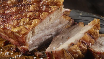Pork belly is usually slow-cooked in an oven at a low temperature to fork-tender lusciousness, and then the temperature is increased to crisp up its skin to a satisfying crunch. The method works, but there is some chance of drying out the pork belly, and getting its skin to the much-desired crackling snap isn't guaranteed. Time to ask an expert for tips: Chef Rick Parente and his wife co-own Clock Tower Grill in Brewster, New York State, and also sustainably raise heritage Berkshire hogs, which often appear on the menu. Chef Parente shared with us his foolproof way for cooking pork belly.