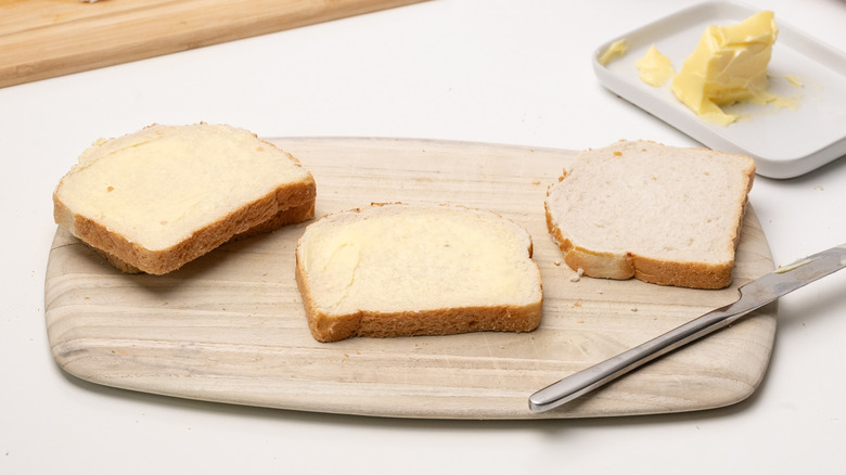 - Finish off the sandwich by placing the remaining slices of bread, butter side outward, on top.