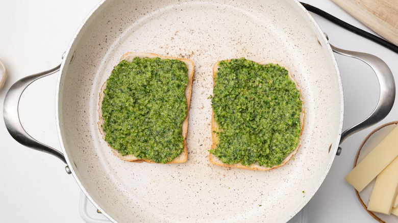- Top each slice of bread with a tablespoon of the broccoli pesto.