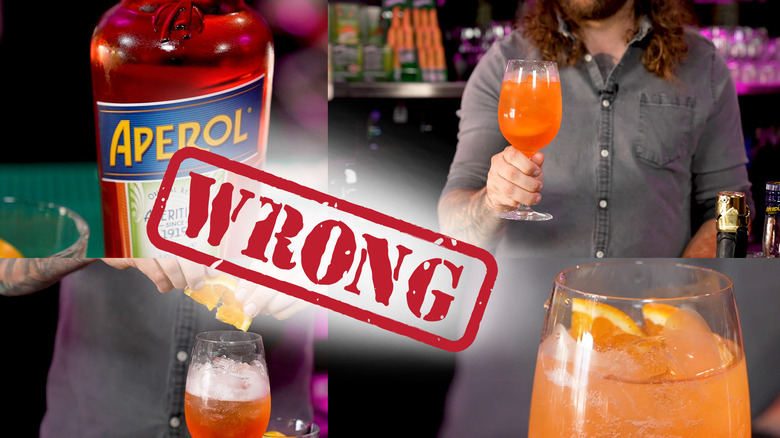 You could say that as a cocktail, the tarty Aperol Spritz is almost magical. Refreshingly light, with just one taste, you'll feel transported to the romantic country of Italy. But while it's a relatively easy boozy drink to craft, you may often find your Aperol Spritz falling flat. And the reason why this drink can lose all its sparkling and bubbly magic is because you're probably making it wrong. You're not keeping this classic cocktail simple and clean, as Chowhound recipe developer Kamaron Lockwood. "There are a lot of variations that don't always translate ... and I think people make it a little too complicated," Lockwood explains.